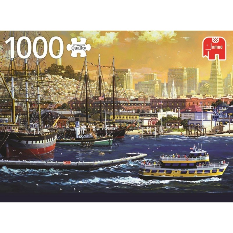 El Puzzle Jumbo La Bahía del Puerto de San Francisco de 1000 Piezas es fabricado en holanda con una gran calidad de impresión y de corte de piezas que asegura que cada pieza encaja perfectamente y mantiene su forma a pesar de que se desmonte el puzzle y se resuelva una gran cantidad de veces.
