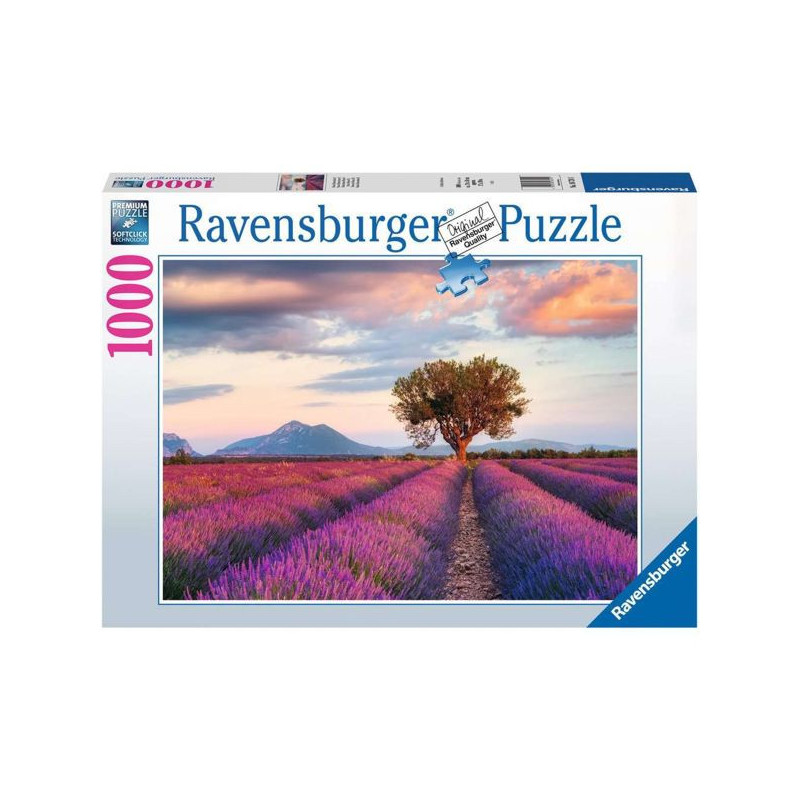 Con el Puzzle Ravensburger Campos de Lavanda de 1000 piezas, puedes recrear la magia de los campos en flor en cualquier momento. Una experiencia visual cautivadora que te permite disfrutar de la naturaleza de una manera única y creativa.