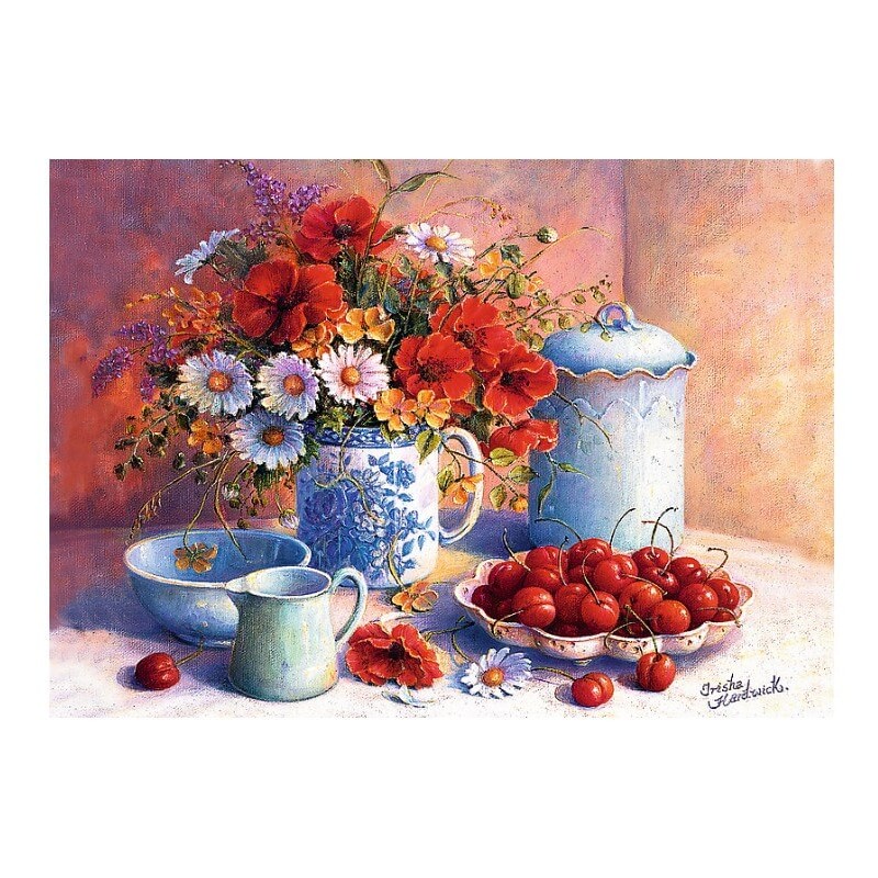 Puzzle de 2000 piezas que muestra un cuadro de flores de cerezo silvestre en un plato. Después de ordenar, se creará una imagen con dimensiones de 96x68cm. El uso de materiales ecológicos garantiza una alta calidad, saturación de color y una colocación segura.