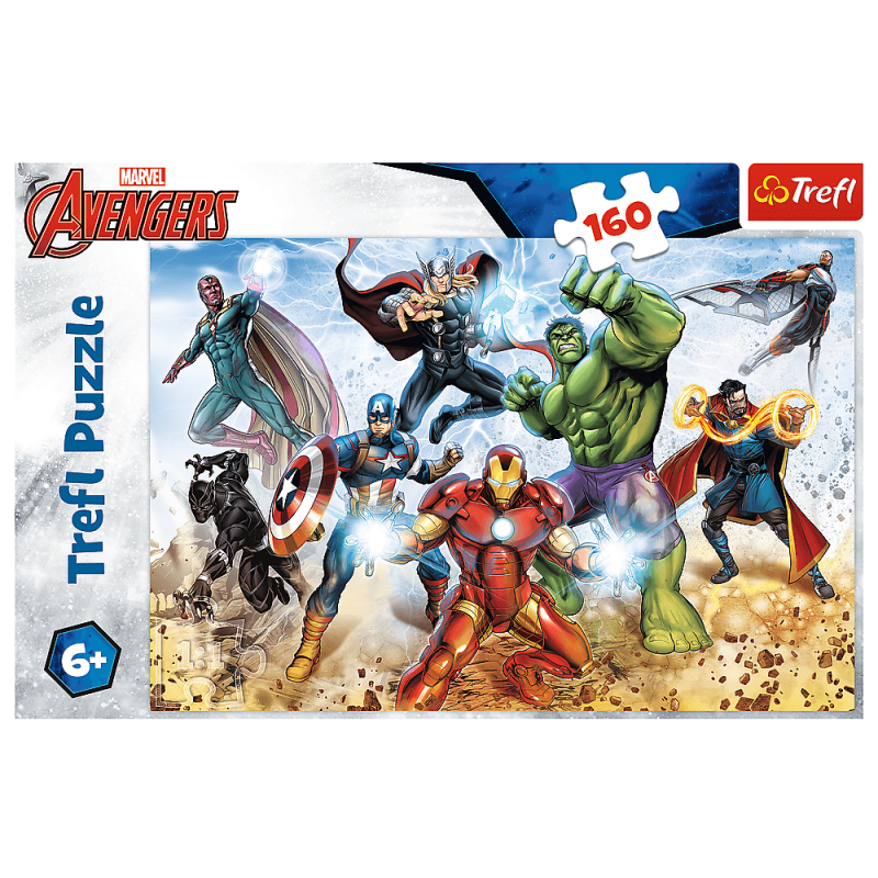 Un rompecabezas que consta de 160 elementos, diseñado para todos los fanáticos y fanáticos de la película animada Avengers. Después de colocar el rompecabezas, se creará una imagen de 41 x 28 vm.
