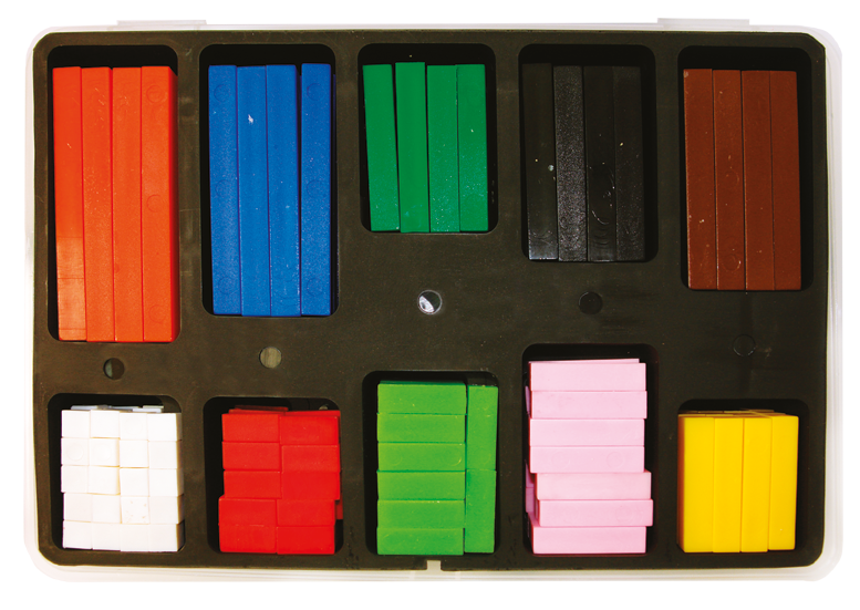 Excelente auxiliar para comprensión de equivalencias numéricas a través del color y la representación de operaciones básicas. Se encuentra totalmente lisa.