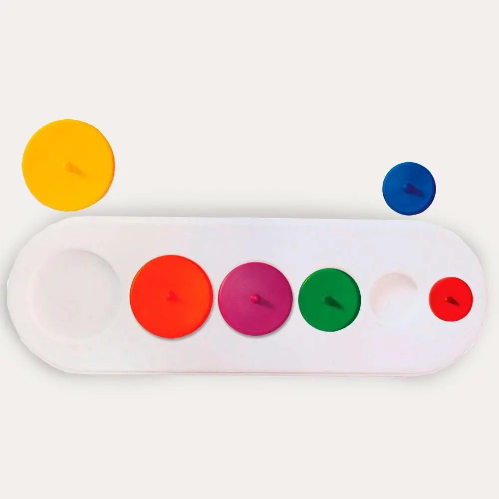 Tablero en el que el alumno coloca en orden creciente o decreciente cuadrados, desarrollando sus habilidades motoras finas, el conocimiento de las figuras y su clasificación.