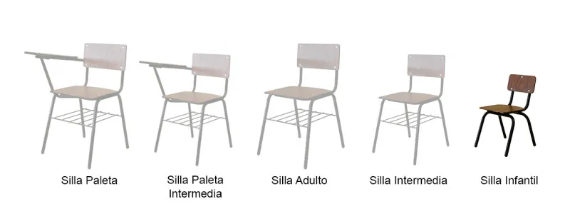 Asiento y respaldo en MDF de 9 mm, con laminado plástico de alta presión color nogal claro.