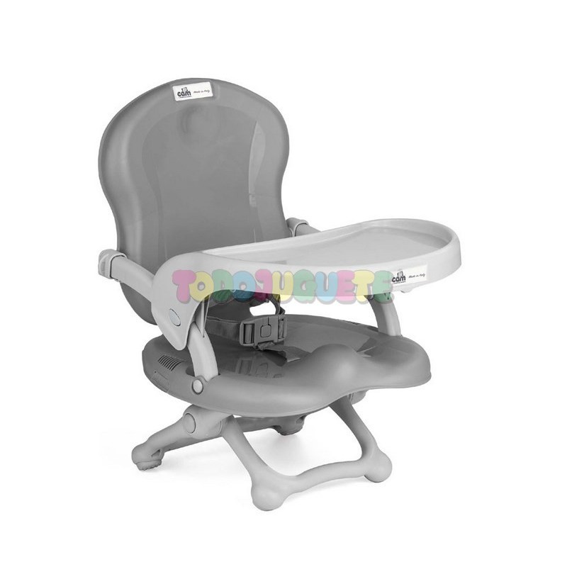 Silla de mesa con bandeja extraíble y arnés de sujeción.
