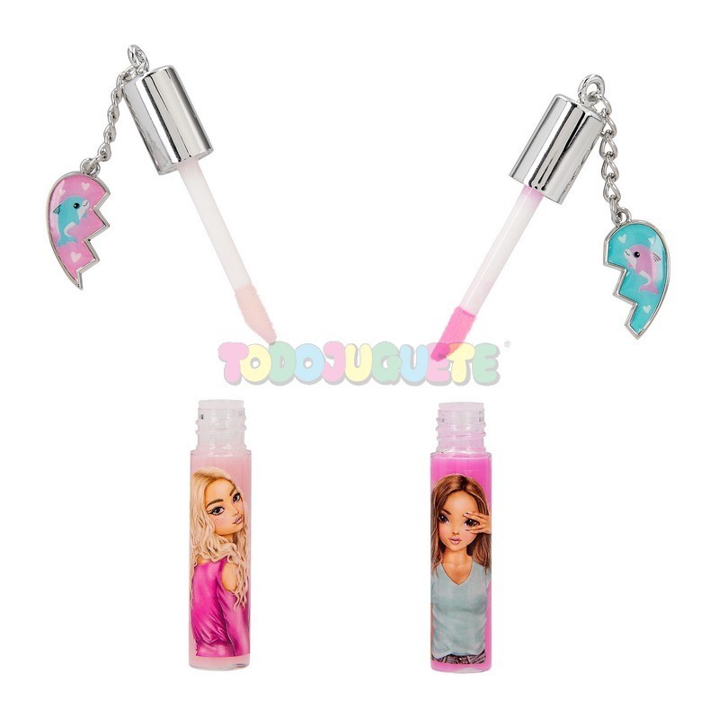 Beauty and me. El set de pintalabios para mejores amigas de la colección Beauty de TOPModel contiene un gloss labial fucsia y otro rosa. Cada uno lleva un colgante metálico con la forma de medio corazón. Para conseguir un delicado color en los labios que, además, tiene un aroma maravilloso: fucsia con aroma a arándano; rosa con aroma a melocotón. Cada tubito contiene 3 ml de gloss.