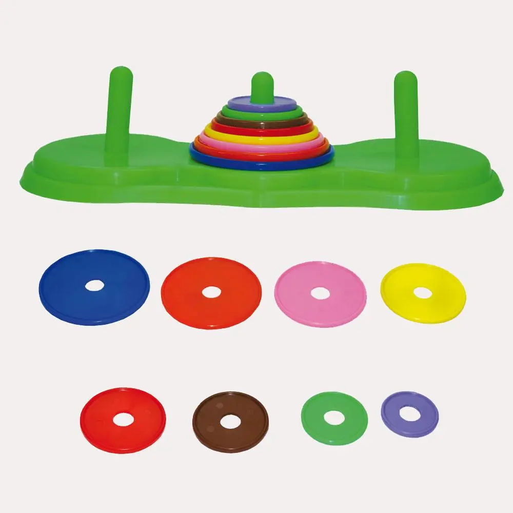 Tablero con postes en los que se tienen que ir colocando uno a uno en un orden creciente 8 aros. El niño adquiere conceptos de tamaño, direccionalidad y verticalidad. Ayuda al niño a adquirir destreza psicomotora fina.