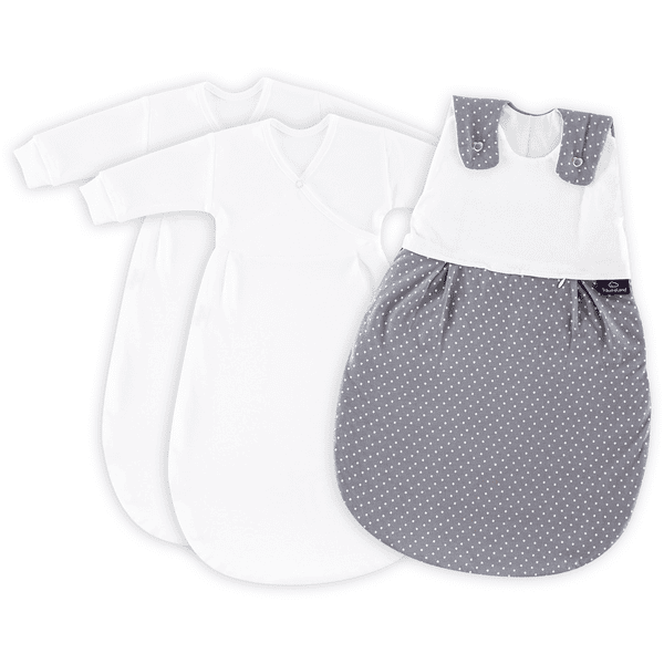 Träumeland Saco de dormir conjunto lunares gris Los bebés y los niños pequeños generalmente necesitan por lo menos catorce horas de sueño al día. Un entorno óptimo para dormir es esencial para la salud del bebé. La combinación del colchón adecuado y un saco de dormir transpirable ayuda a evitar la acumulación de aire y calor en la cuna.