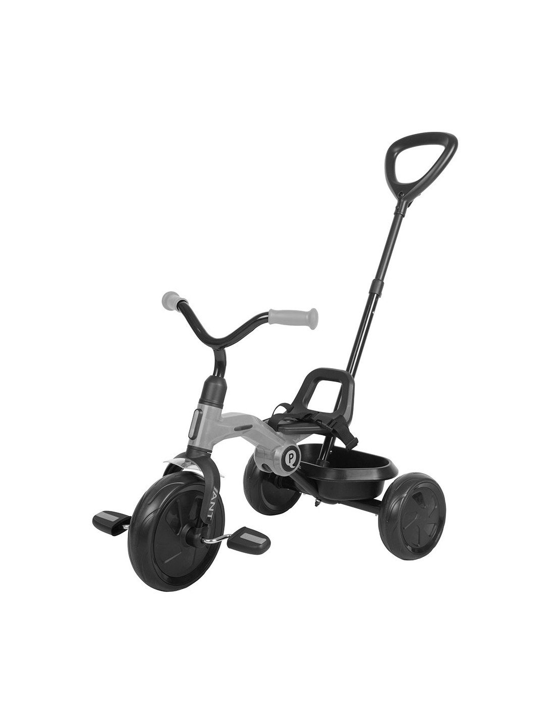 Una práctica cubeta de almacenamiento posterior permitirá a los peques llevar sus juguetes favoritos durante sus aventuras con el triciclo plegable Ant Plus de QPlay.