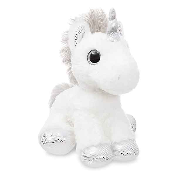 Descripción y características Unicornio Blanco y Plateado Peluche 31 cms