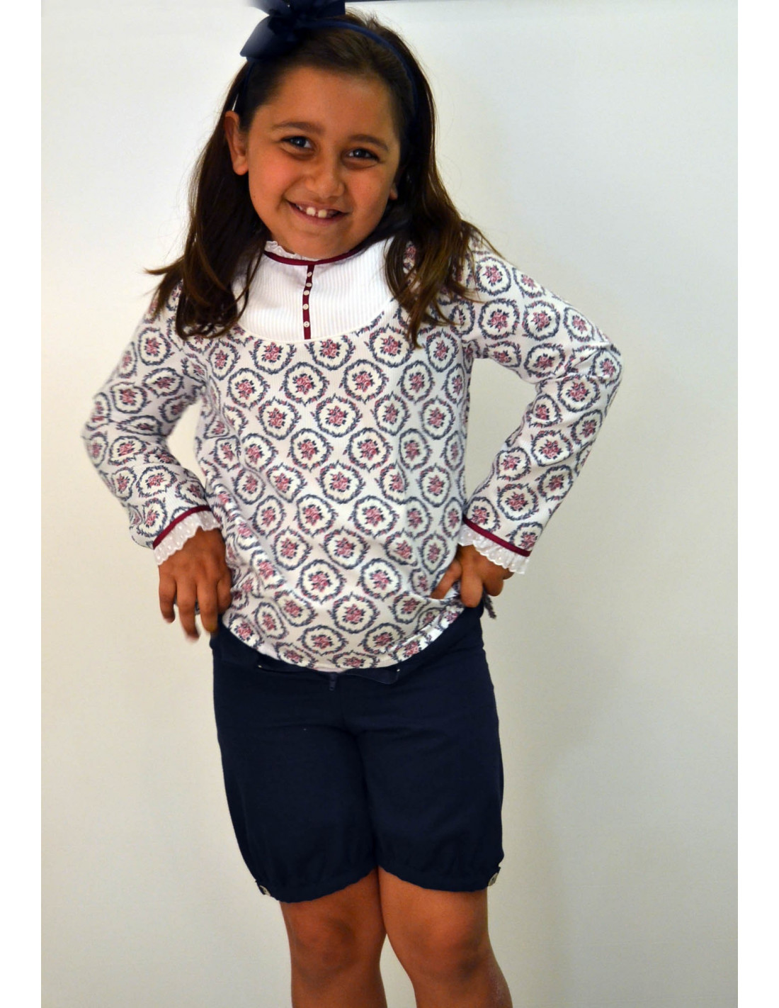Pantalón en color azul marino y camisa media manga color de estampado marino y burdeos