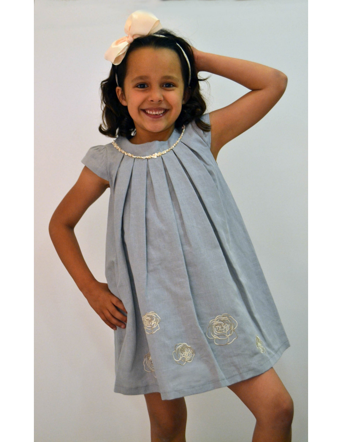 Vestido para niñas gris con detalle flor verano de Girandola