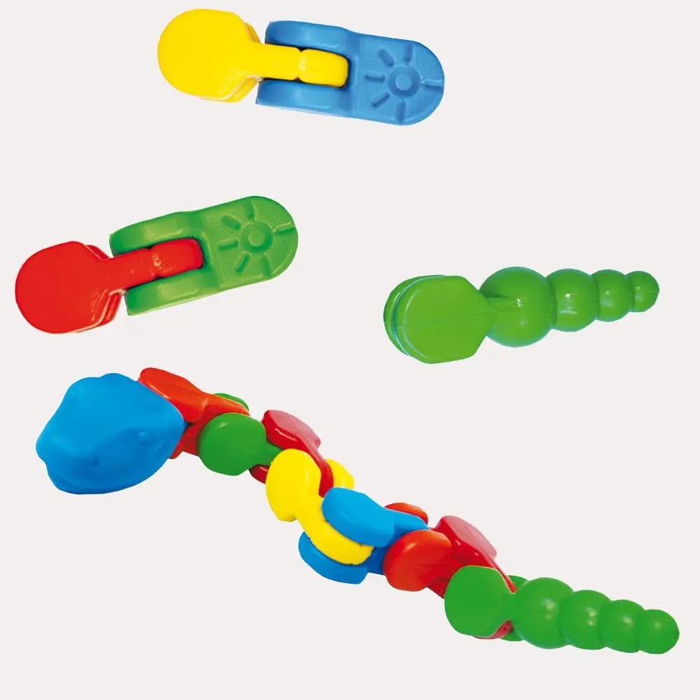 Los eslabones en forma de cadena permiten al alumno realizar movimientos con diferentes ángulos y habilitar la coordinación fina en el ensamble entre piezas.
